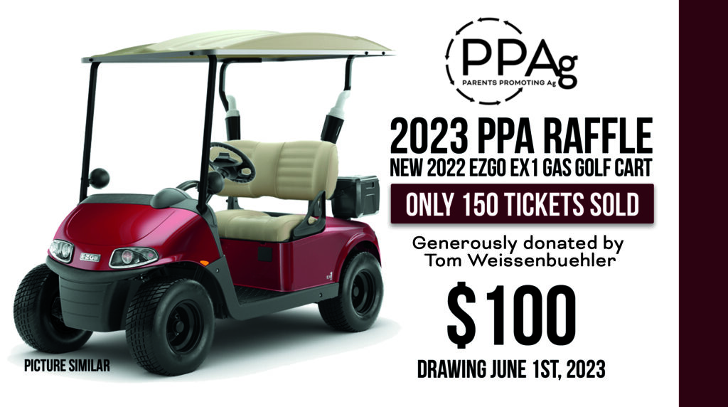 Only 150 tickets will be sold for this raffle. The drawing for the Golf Cart will be June 1st, 2023 at the Emmett CityGolf Course, 2102 W Sales Yard Rd, Emmett, ID 83617 and streamed online on the ParentsPromoting Ag Facebook Page.
